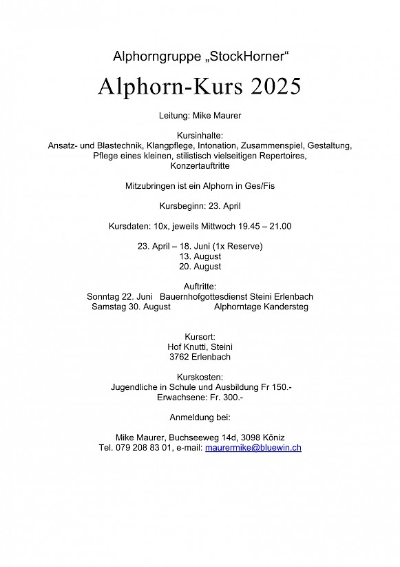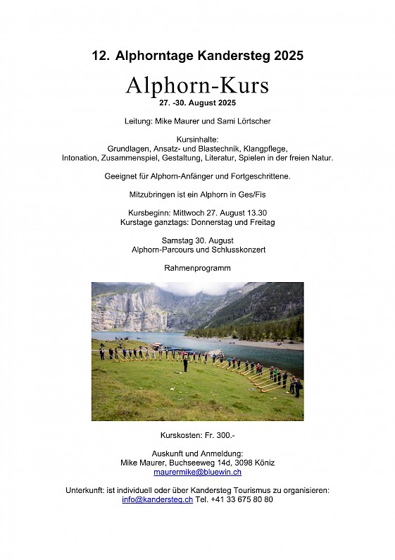 Kontakt und Anmeldung: info@alphornseminar.ch